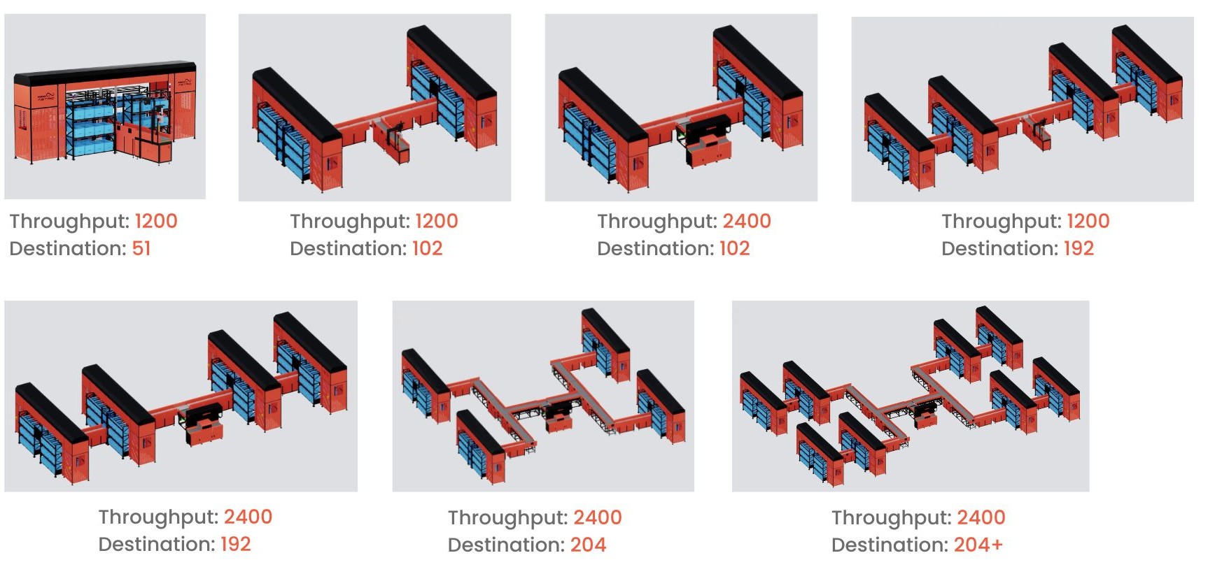Automate order sorting with up to 200+ destinations, 2,400 items/hour, and a 12–18 month ROI – all within just 300 sq ft of space.